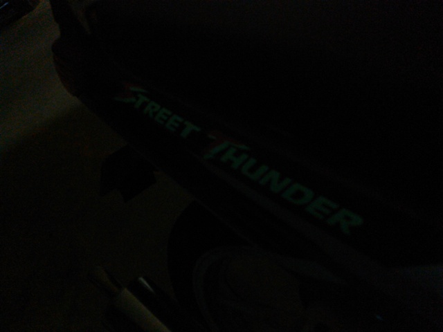 派手派手なカウルがついています。英数字部は蛍光塗料が塗られており暗闇で光ります。